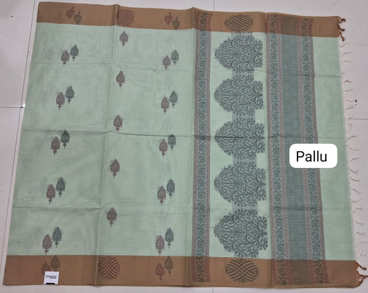 Light Pista Green plain Khadhi Pure Pattu Saree