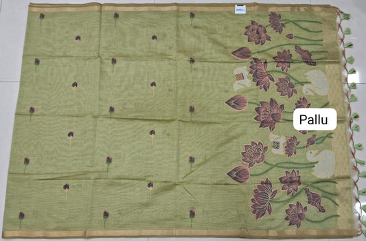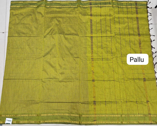 Lime Green Khadhi /Mulmul Cotton Saree