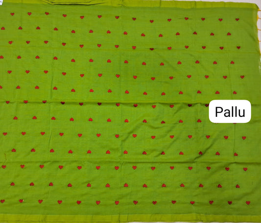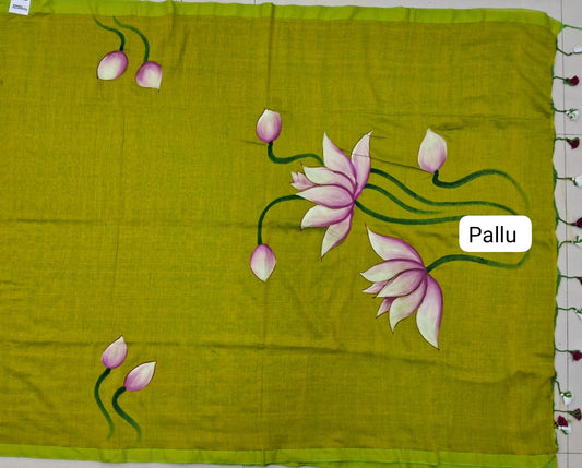 Sold outLime Green Mulmul Cotton Saree