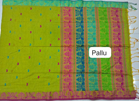 Sold outLime Green Kalyani Cotton Saree
