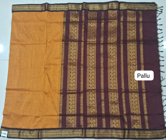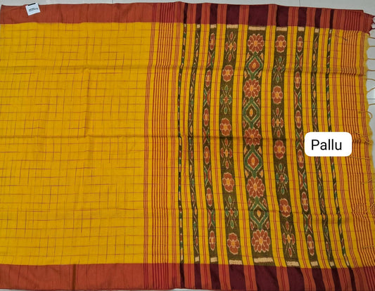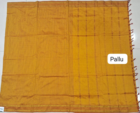 Mango Yellow checked Khadhi Cotton Saree