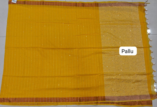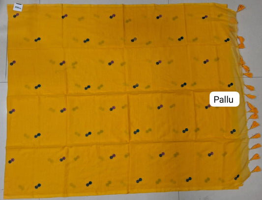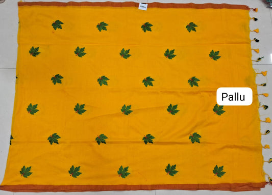 Sold outMango Yellow Khadhi Mulmul Saree
