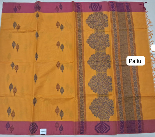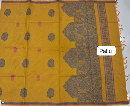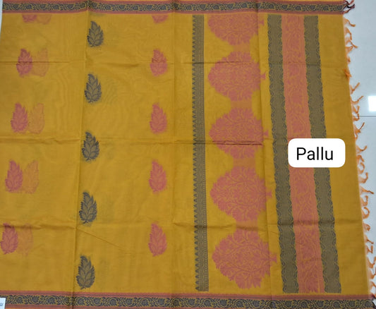Mango Yellow Korvai Kanchi Cotton Saree