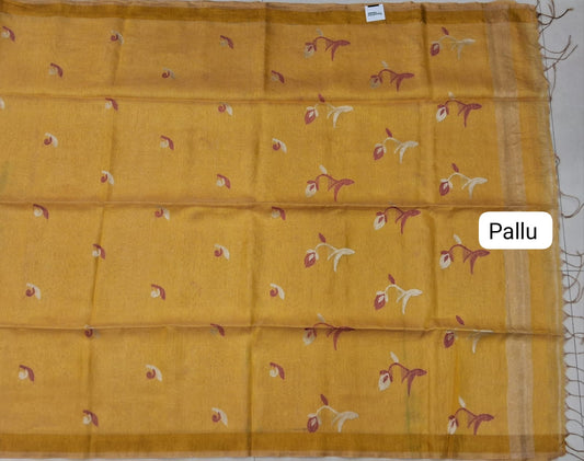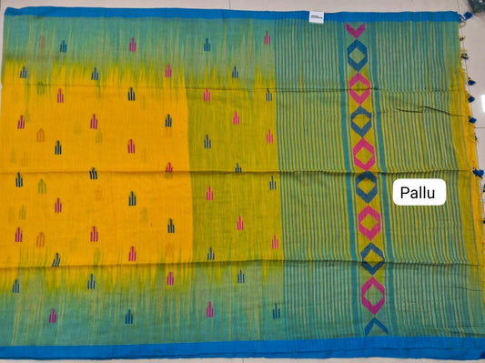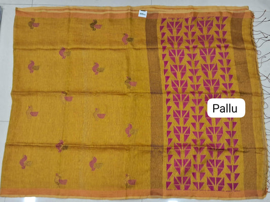 Sold outMango Yellow Khadhi Linen Saree
