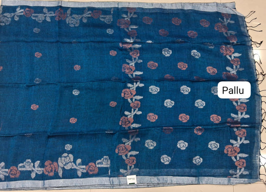 Marine Blue Khadhi /Mulmul Cotton Saree