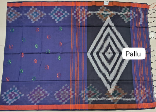 Sold outNavy Blue Khadhi Ikkat Cotton Saree