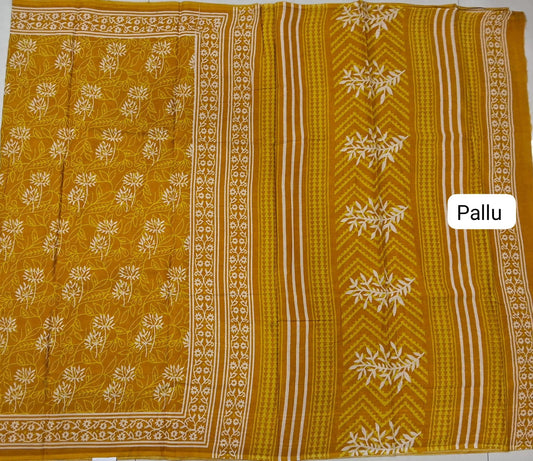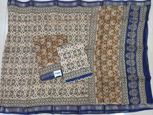 Olive green with Cream flower printed maheshwari top