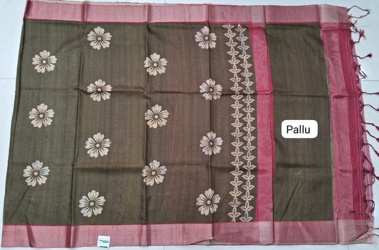 Sold outOlive Green Tussar Saree