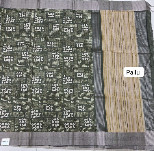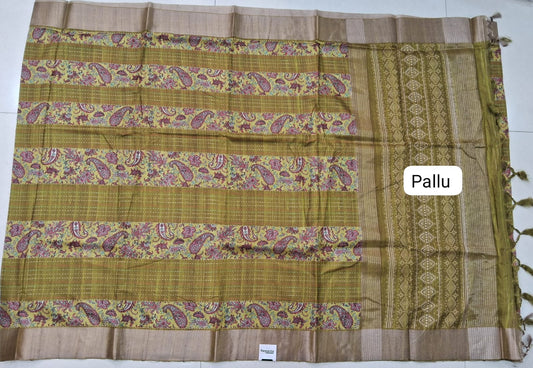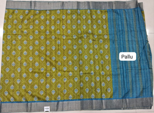 Sold outOlive Green Semi Tussar Saree