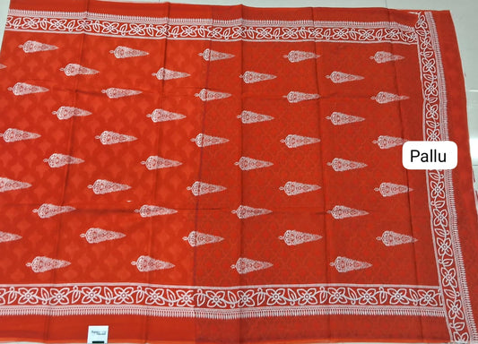 Sold outOrange Mulmul Cotton Saree