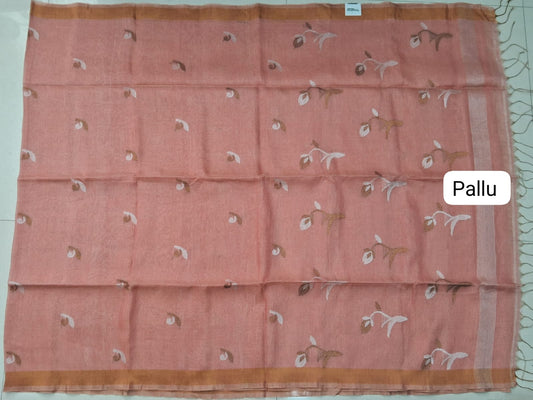 Sold outPeach Khadhi Linen Saree