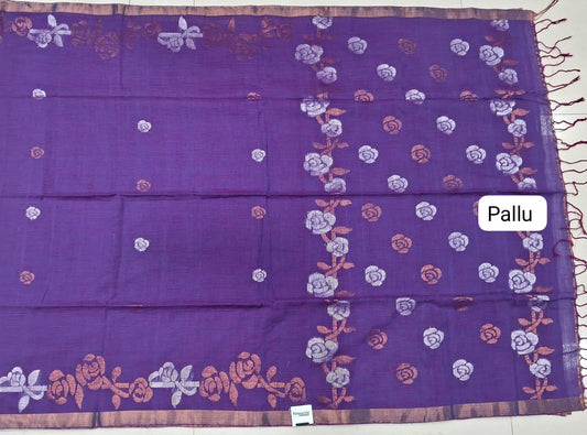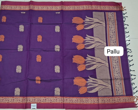 Sold outPurple Korvai Kanchi Cotton Saree