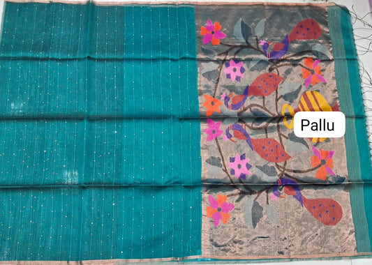 Sold outRama Green Semi Linen Saree