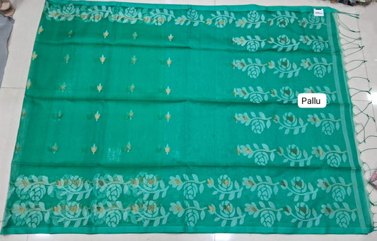 Rama Green Mulmul Cotton Saree