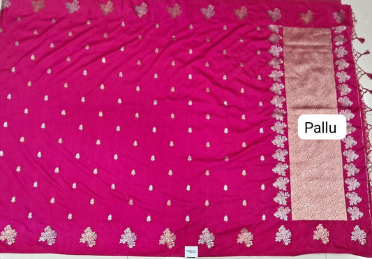 Sold outRani Pink Khadhi Mulmul Saree