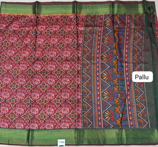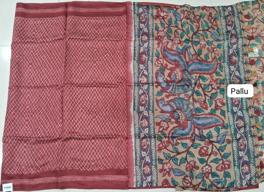 Red with Beige motifs on the chanderi top