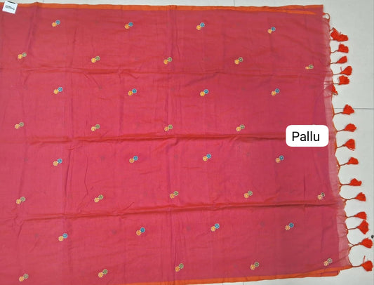 Sold outReddish Pink Khadhi Mulmul Saree