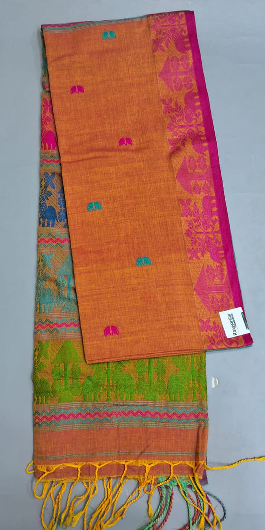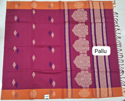 Sold outReddish Korvai Kanchi Cotton Saree