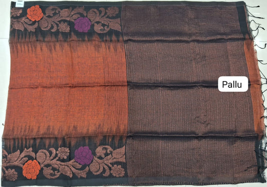 Sold outRust Orange Khadhi Linen Saree