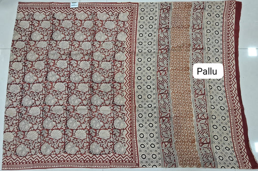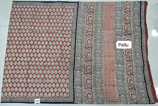 Sold outRust Red Mulmul Cotton Saree