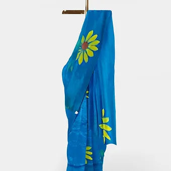 Sky blue handpainted mulmul cotton saree