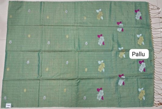 Sold outSeafoam Green Tissue Linen Saree