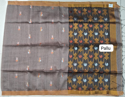 Sold outTaupe Brown Mulmul Zari Cotton Saree