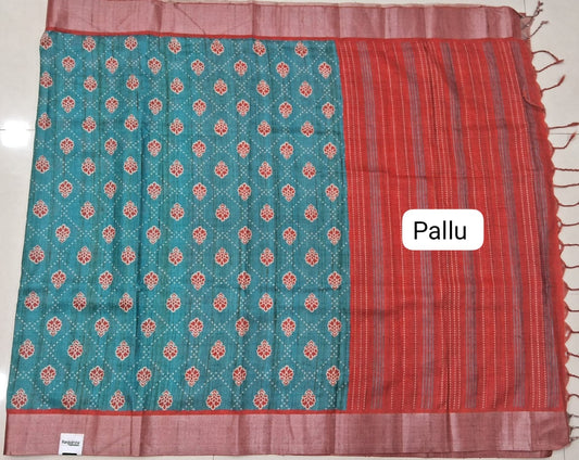 Teal Blue with Green ,Red ajrakh printed cotton top