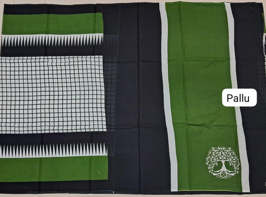 White and Black checked Mulmul Cotton Saree