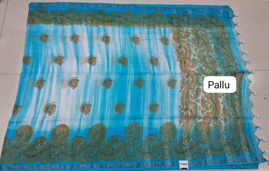 White with Sky Blue Shibori Khadhi Cotton Saree
