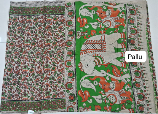 Cream Kalamkari Cotton Saree