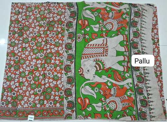 Orange Kalamkari Cotton Saree