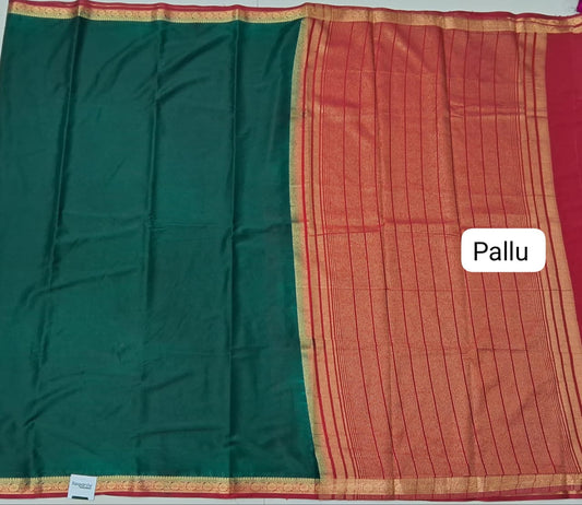 Sold outBottle Green Plain Crepe Silk Saree