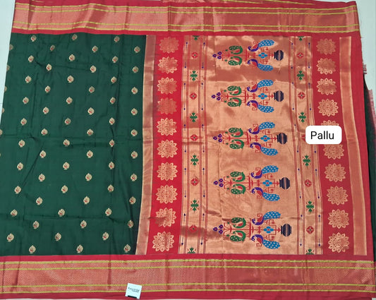Bottle Green Paithani Semi Silk Saree