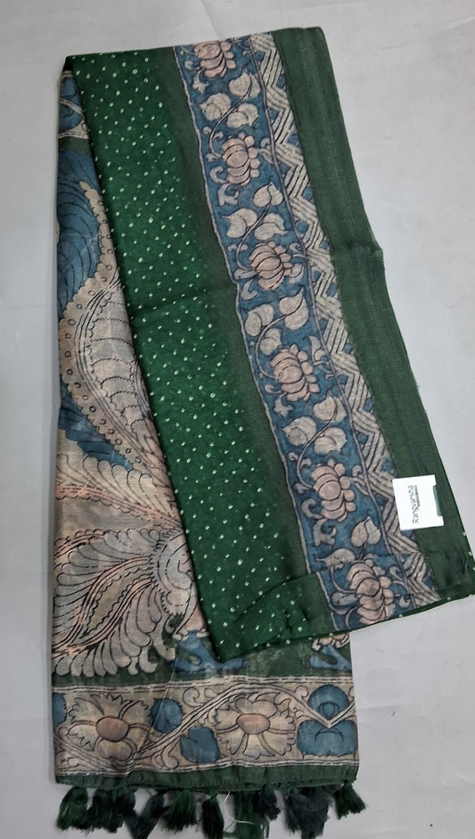 Sold outBottle Green Semi Tussar Saree