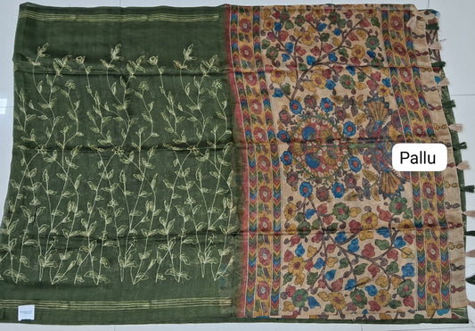 Sold outBottle Green Pure Linen Saree