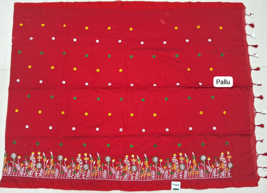 Candy Red and Black Shibori Mulmul Cotton Saree