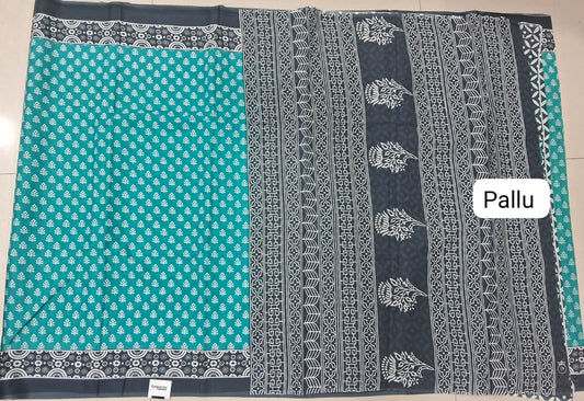Sold outCaribbean Blue Mulmul Cotton Saree