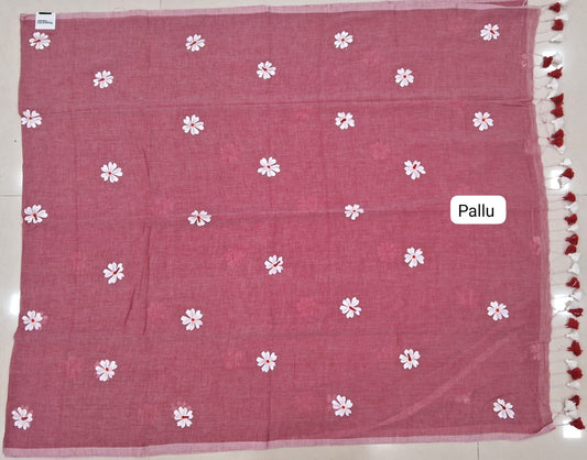 Sold outCoral Pink Mulmul Zari Cotton Saree