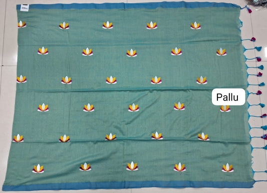 Cool Mint Blue Khadhi /Mulmul Cotton Saree