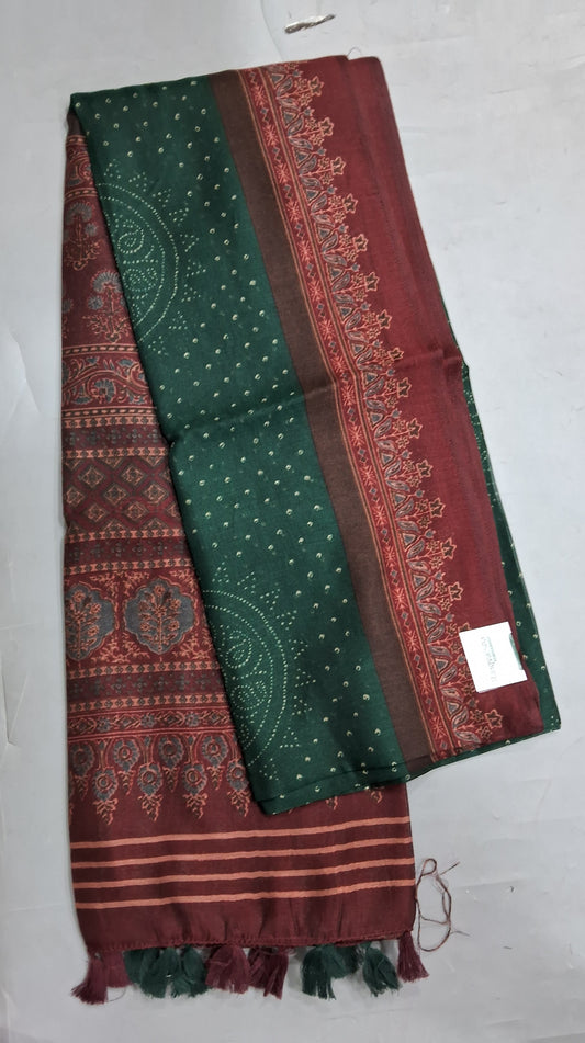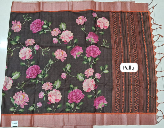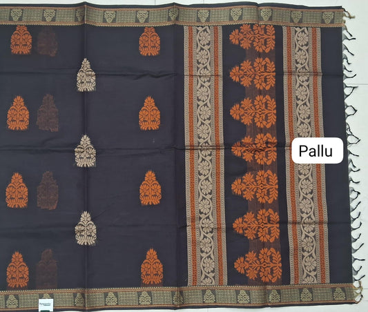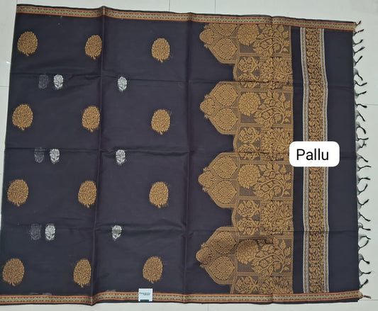 Dark Chocolate Brown Korvai Kanchi Cotton Saree