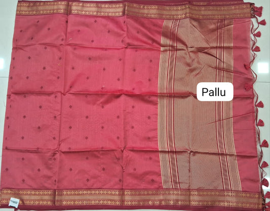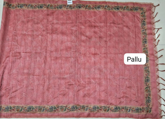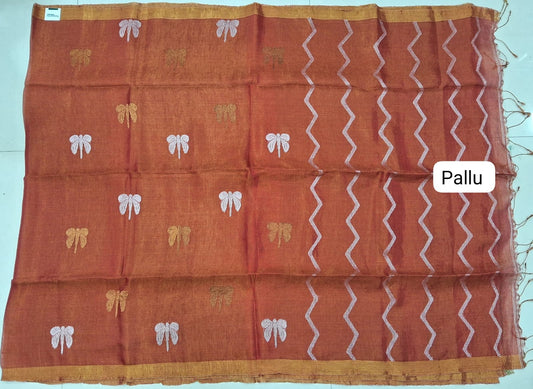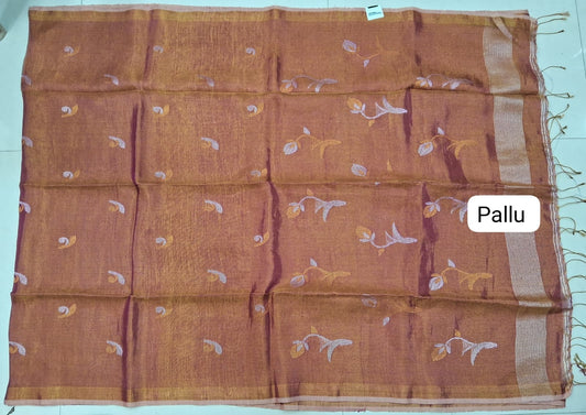 Dark Peach,Green and pink floral printed linen cotton dress material