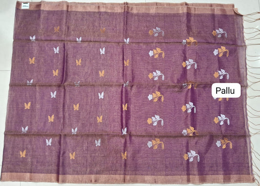 Sold outDual Shade Purple Tissue Linen Saree