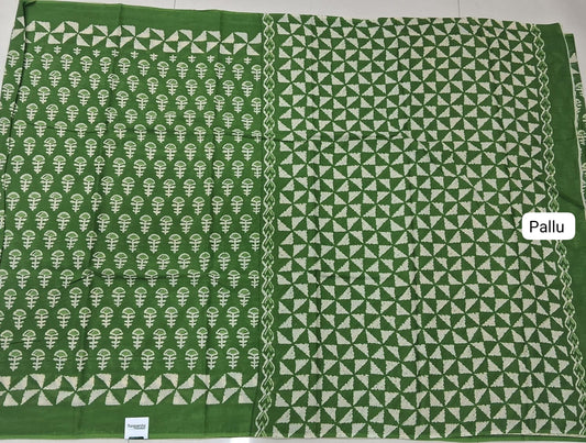 Green Mulmul Cotton Saree