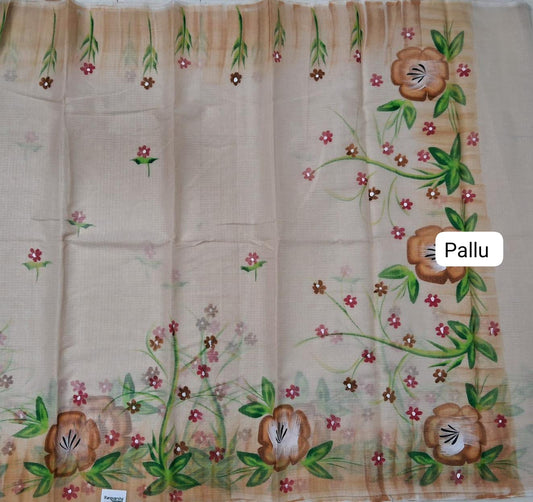 Sold outBeige Linen Cotton Saree