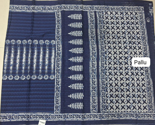 Sold outIndigo Blue Mulmul Zari Cotton Saree