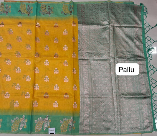 Sold outMango Yellow Munga cotton Saree