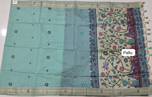 Sold outMarine Blue Mulmul Cotton Saree