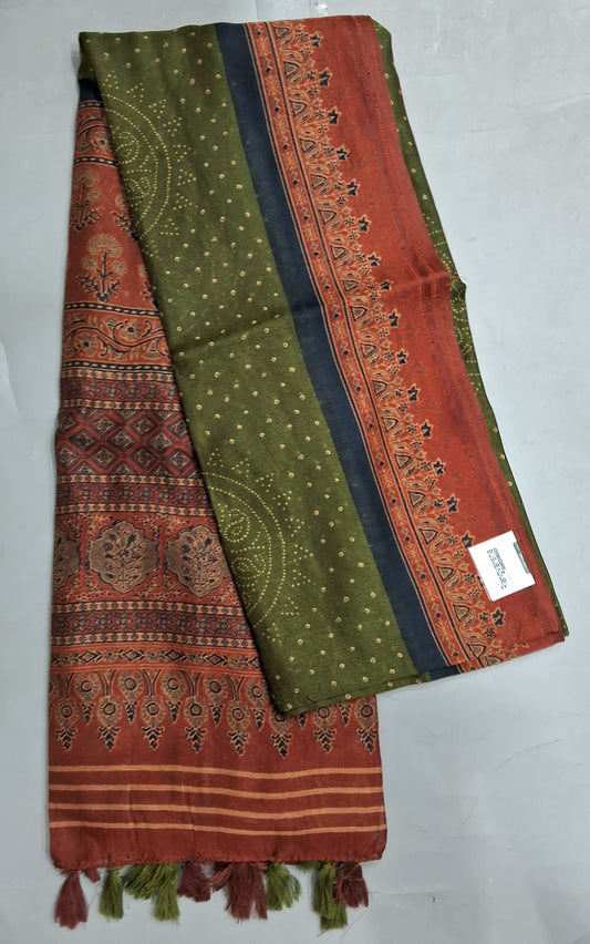 Mehandi Green Khadhi /Mulmul Cotton Saree