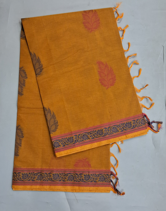 Tangerine Yellow Korvai Kanchi Cotton Saree